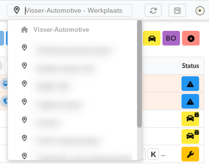 The dealer is listed at the top and is indicated with a house icon, while all available locations are listed below the dealer.
