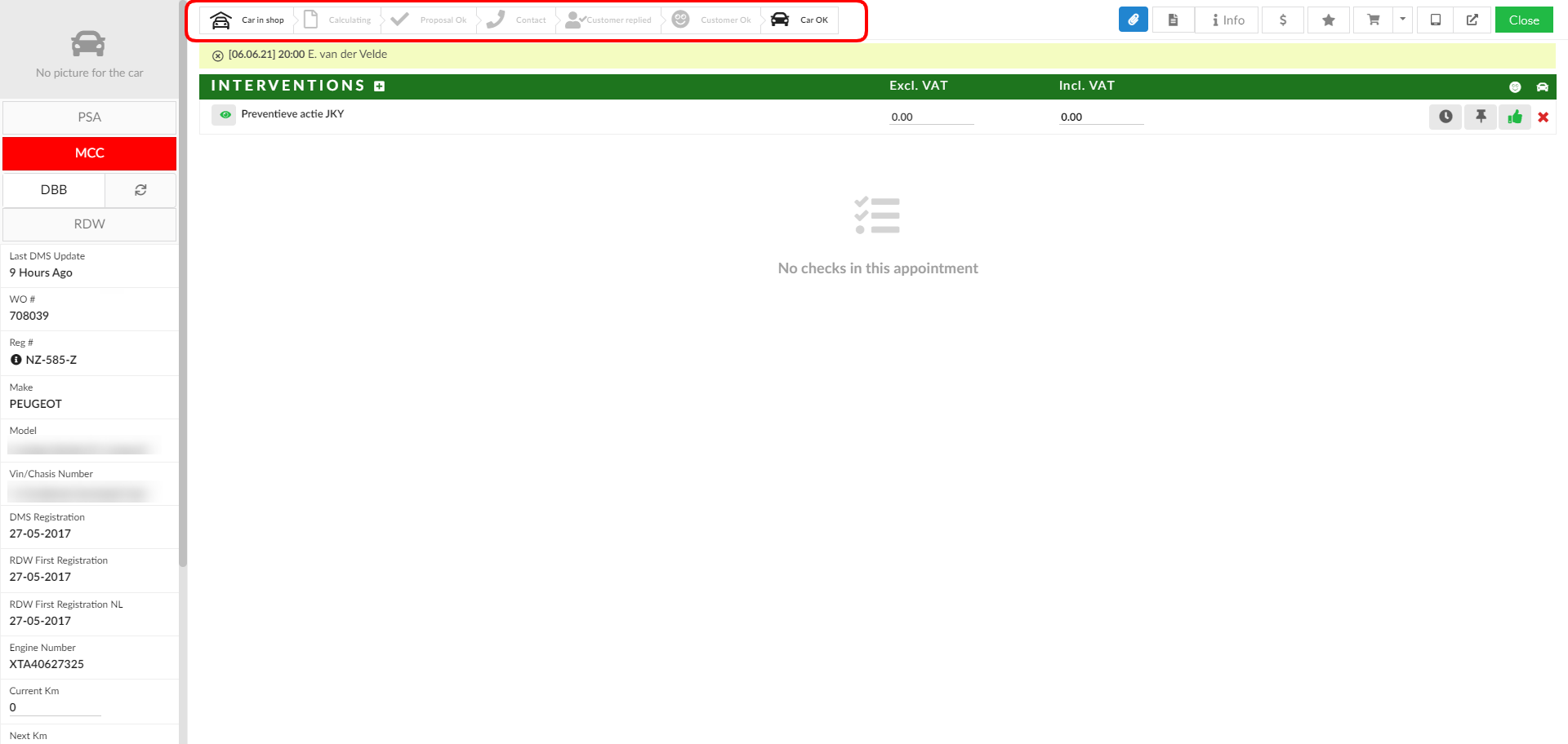 It is very important that this is done consistently per status. This way, everyone within the company is always aware of where in the process the car is.