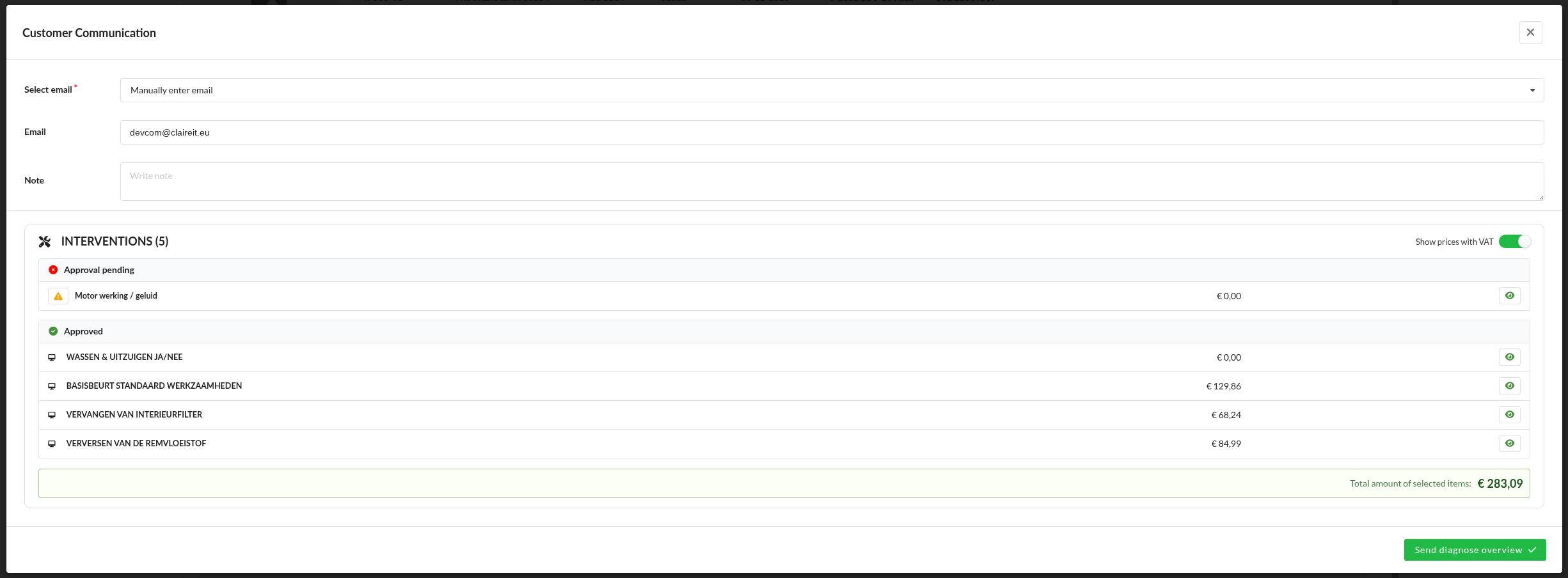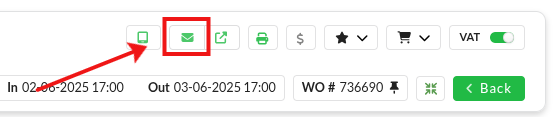 Now send the diagnose overview to the customer by clicking on the letter icon at the top right of the work order.