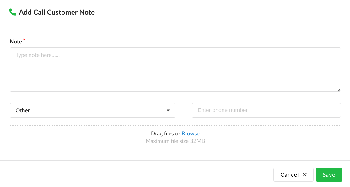 This feature allows you to add a note about a phone call with a customer.