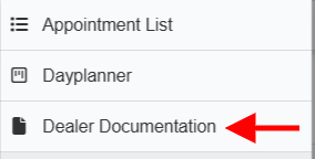 The feature can be accessed from the menu > Dealer Documentation.