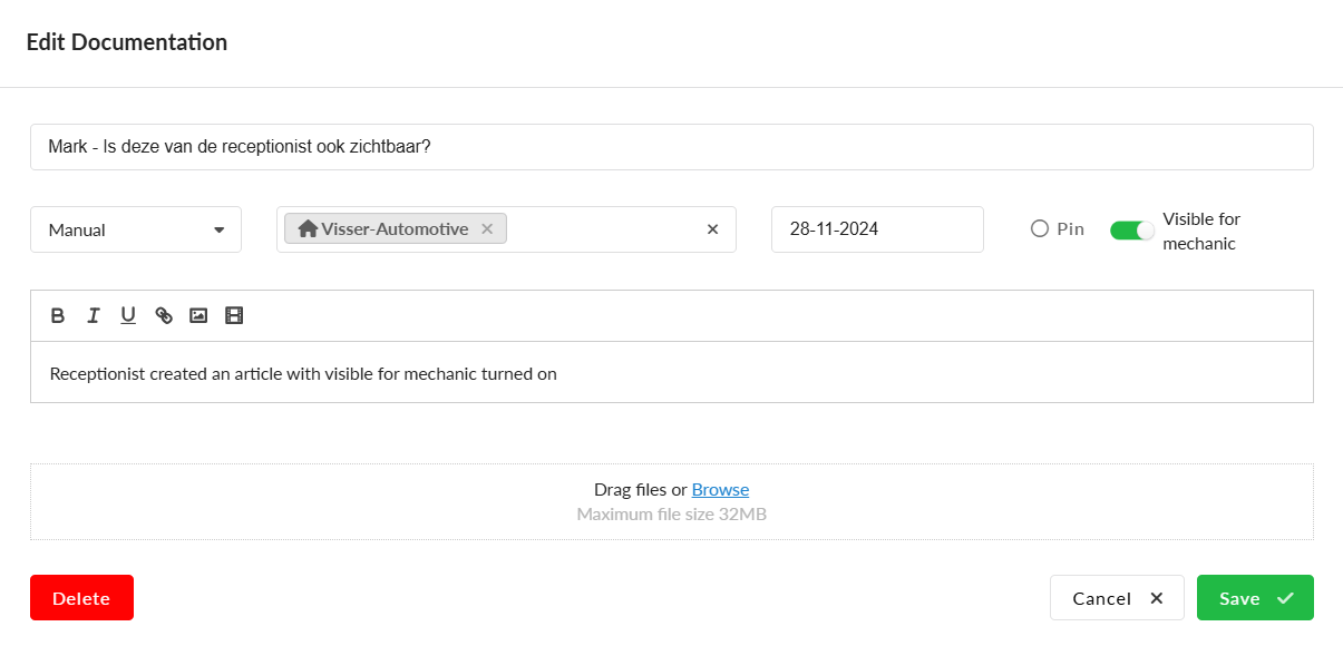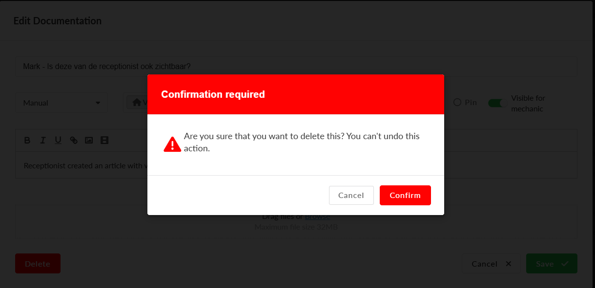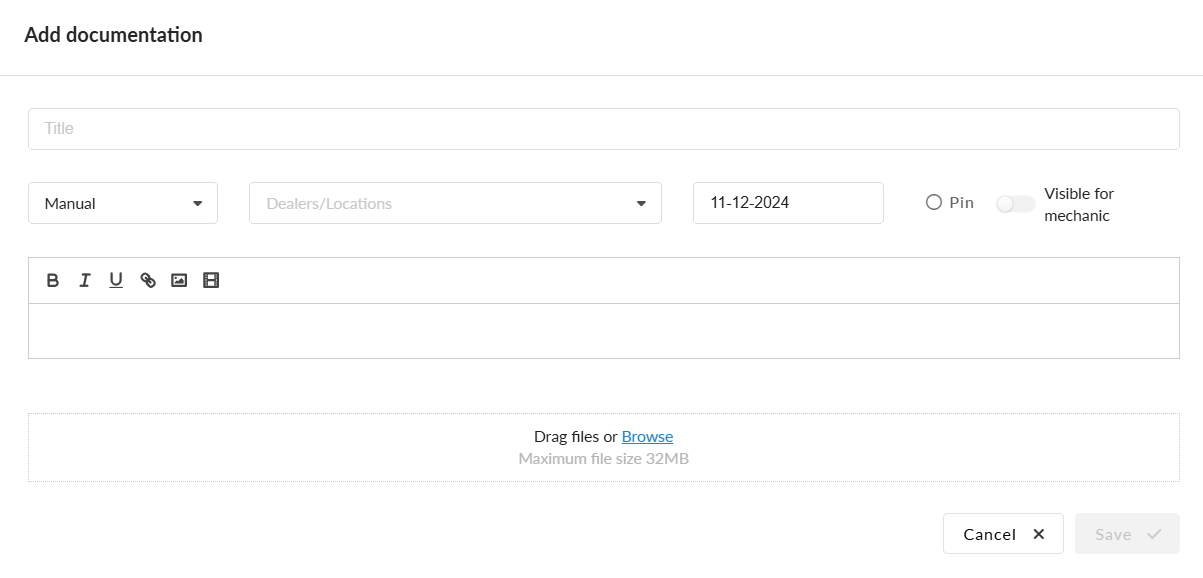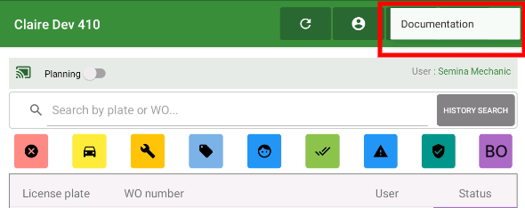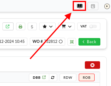 This feature is also accessible in the workorder detailpage by clicking on the book-icon. This will open the Dealer Documentation in a new tab.