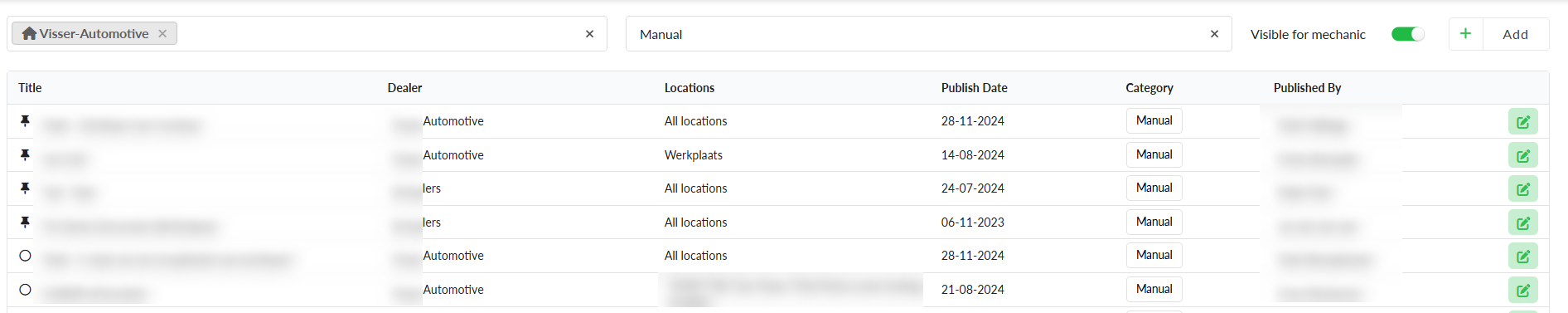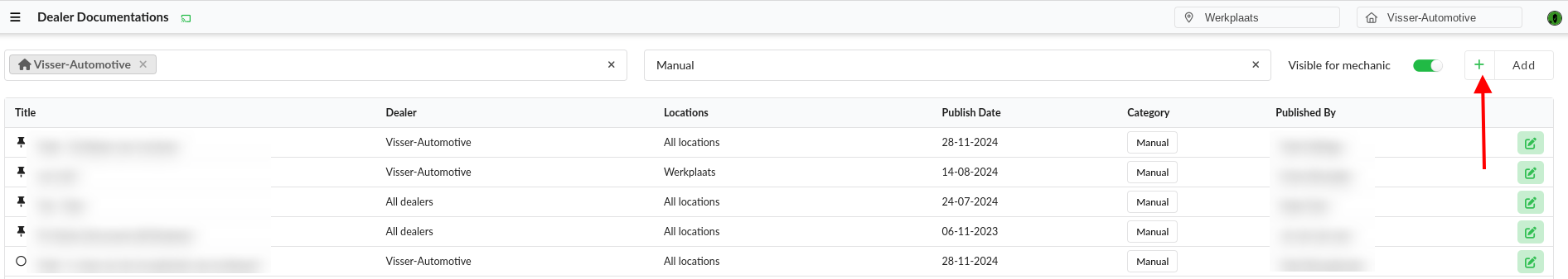 Dealer Documentation dashboard, the team can upload and publish their own