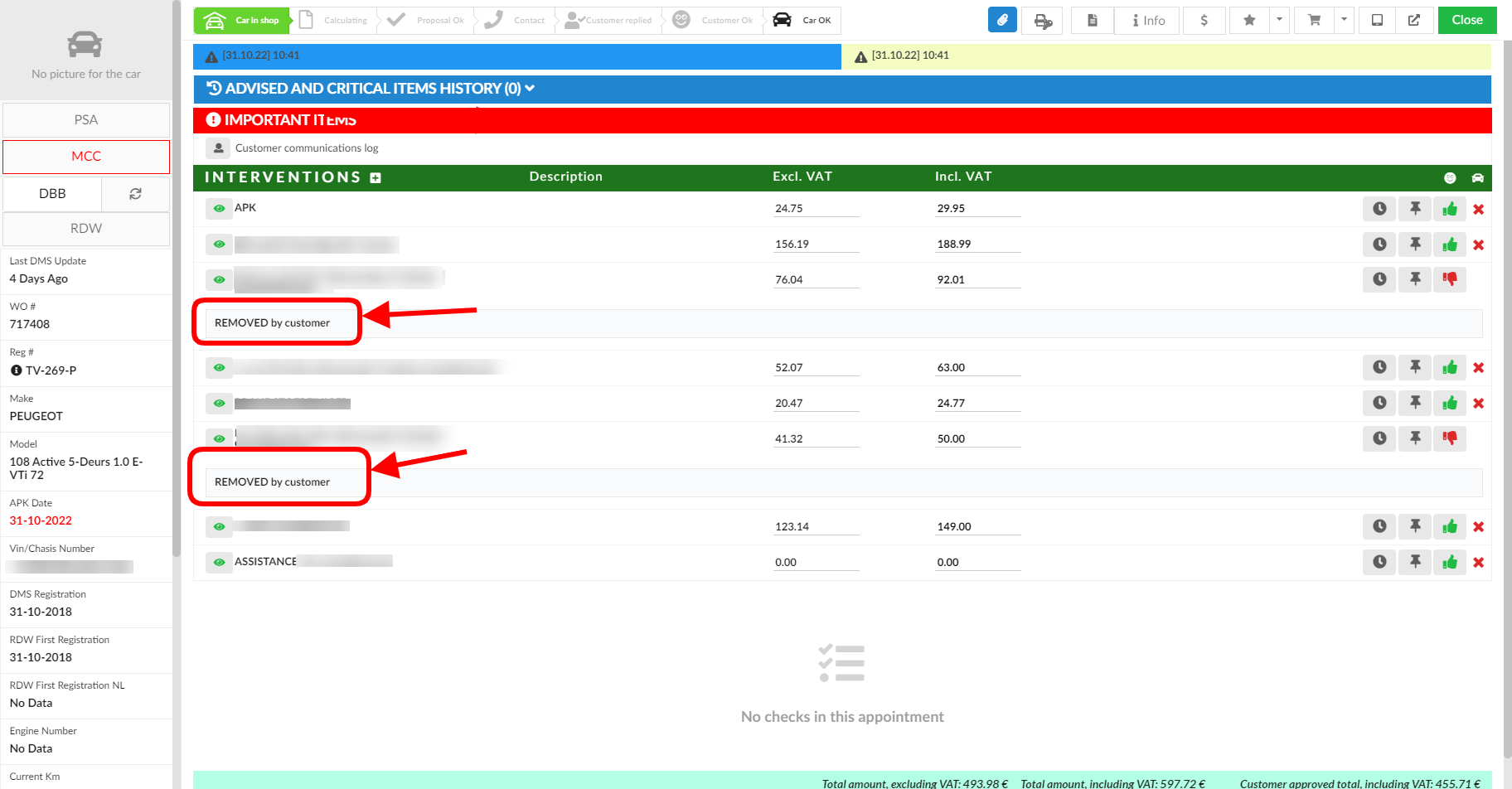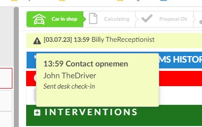 It is also possible to add notes before the desk check-in and to notify that the customer is waiting. These notes will not be visible in the desk check-in, they are only visible in the workorder detailspage and work like the regular notes.