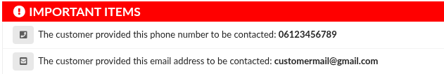 The customer can change their email address and phone number for this work order here. Once the desk check-in is complete, the contact details can be found under Important items in the work order:
