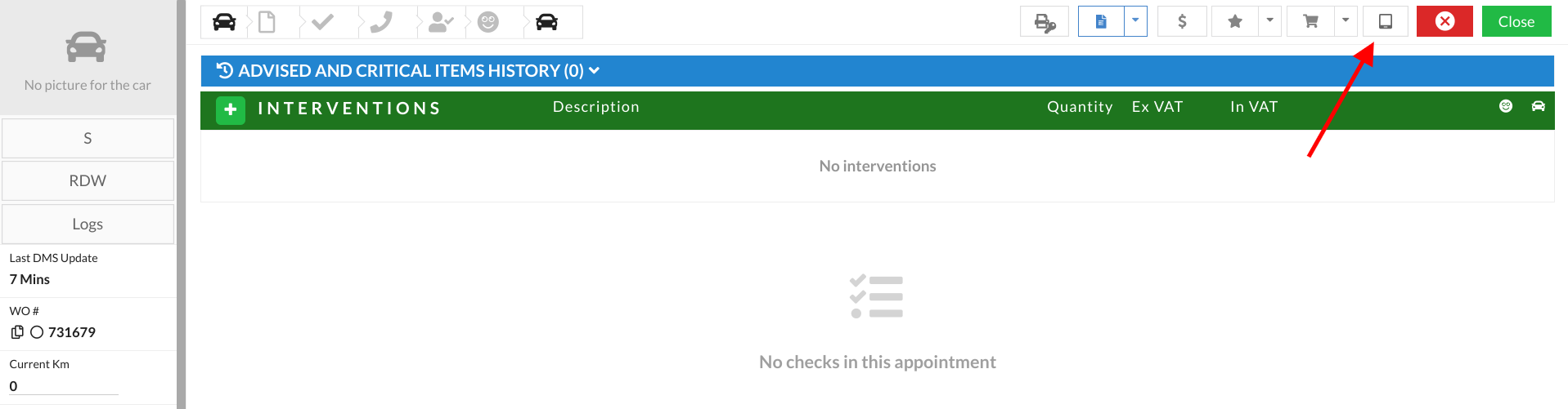 Go to the appointment details page on your desktop and click the button with a tablet icon in the top right corner of the page.