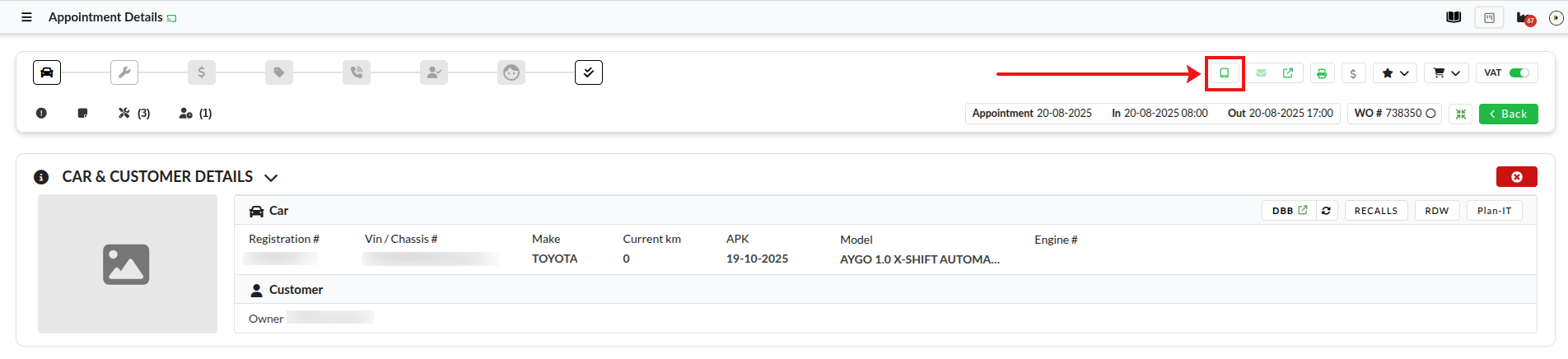 Go to the appointment details page on your desktop and click the button with a tablet icon in the top right corner of the page.