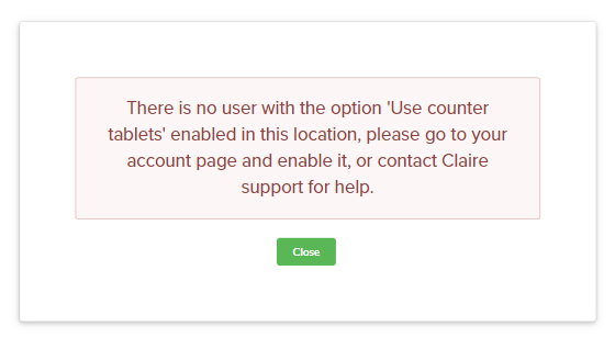 Note: If no receptionist has activated the counter tablet for your location, the following message will be displayed.