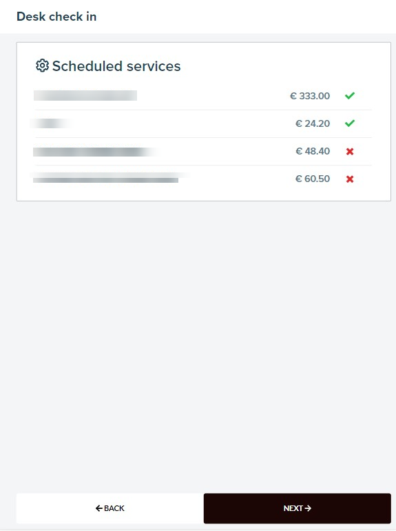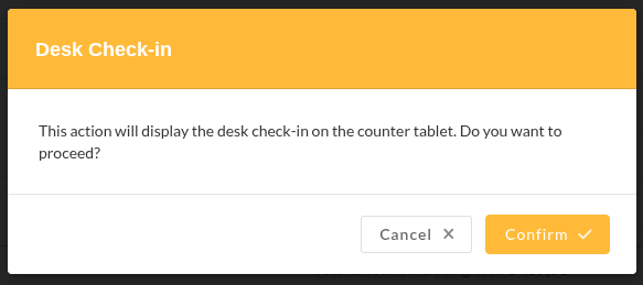 Once this has been enabled, the counter tablet will display the following page after check-in has started: