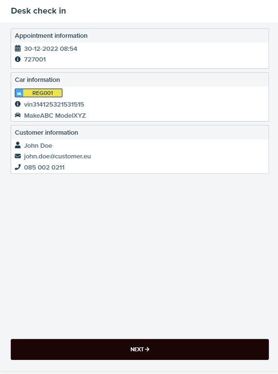 Once the Desk Communication is sent to the device, the customer can view the appointment details to review and either check in or check out.