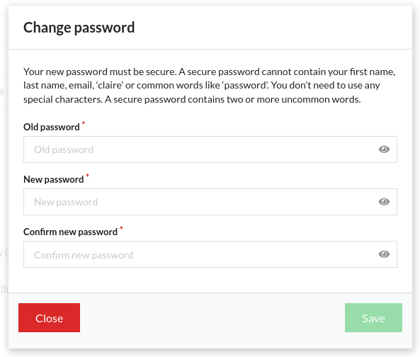 A modal window appears, where you can change your password.