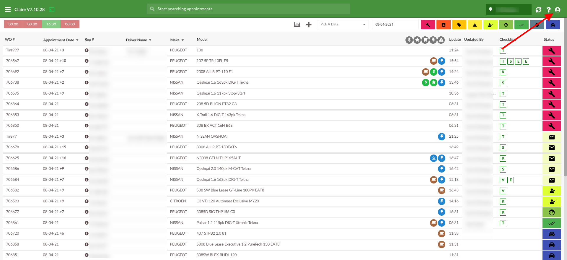 Once you selected Scheduled In/Out Date, WO listed on the main page will be visible: