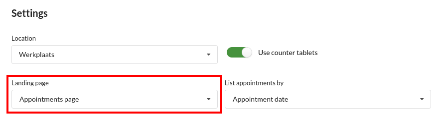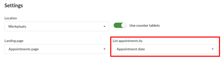 Depending on the option(s) you toggled on, the available shopping cart filters on the appointmentlist page will change accordingly: