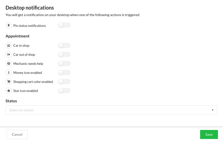 This section allows users to get desktop notifications when appointments are updated with the selected criteria. The Claire program must be open in the webbrowser to receive notifications.