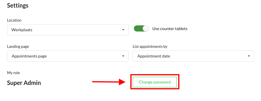Click on the green button called Change Password.
