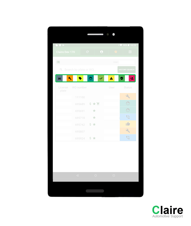 By clicking on one of the icons, this status will no longer be displayed. So if you only want to see which cars are OK with the customer, you can switch off other options. When the option is deactivated, the icon will turn gray.