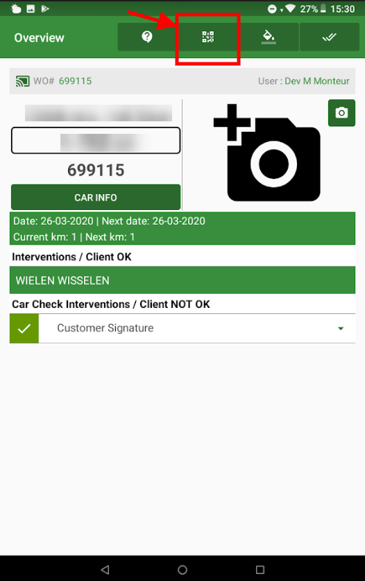 Select the green button (QR code scanner) indicated in the image below.