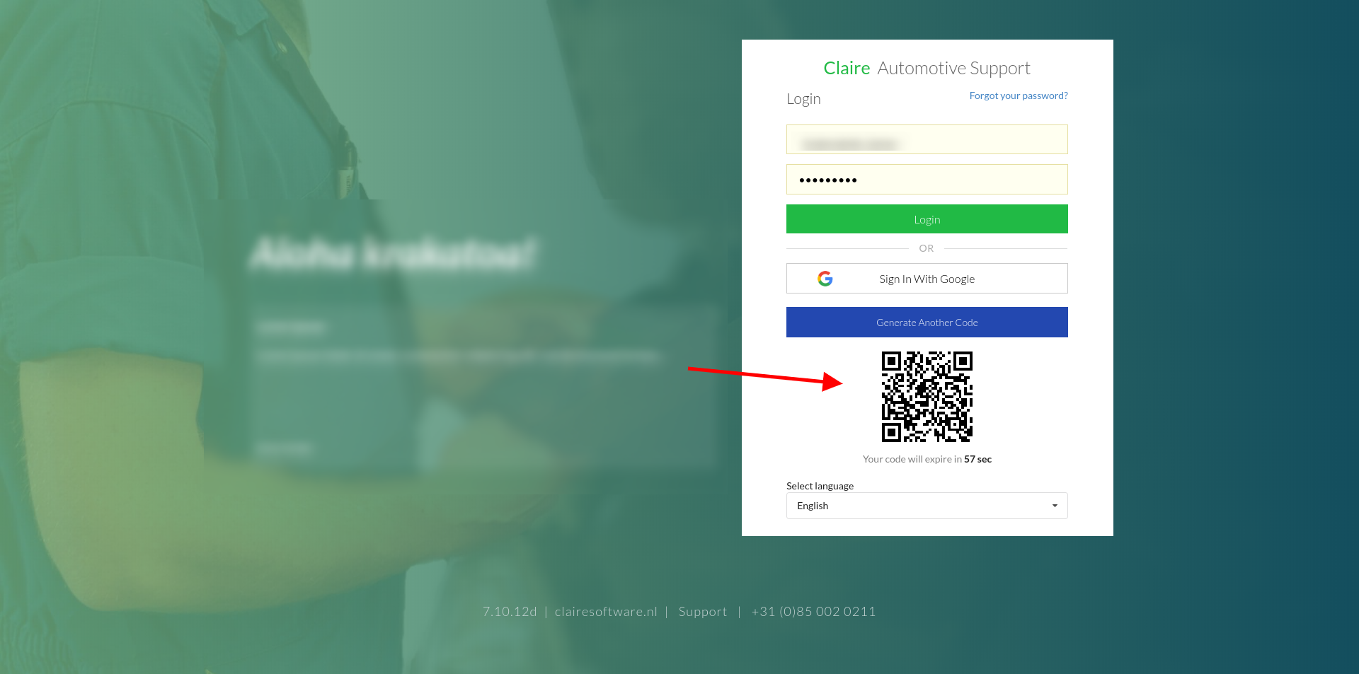 Claire allows mechanics to log in to our web application using a QR code feature on their tablet.