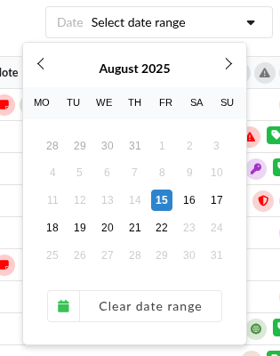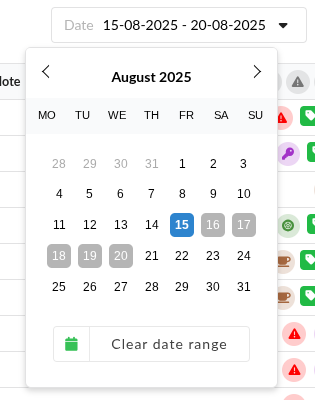 Click on 'Clear date range' to reset to the default date of today.