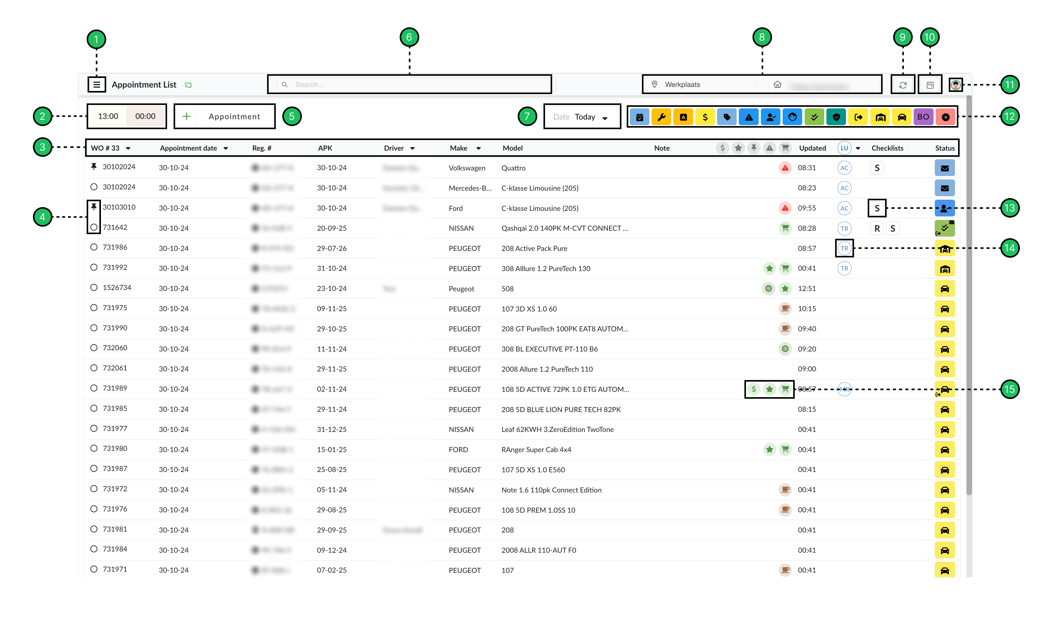 In the search bar, you can search by various criteria, such as workorder numbers or license plate numbers. |
