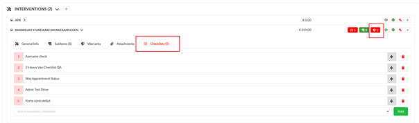 allows automatic assignment of predefined checklists to interventions based on