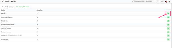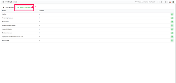 can see for which Service type the checklist is being