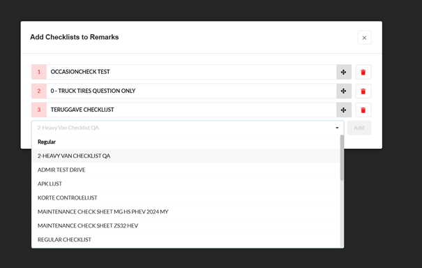 It is possible to add a VIN number to the checklist, then the checklist will only be added to workorders with the corresponding brand.
