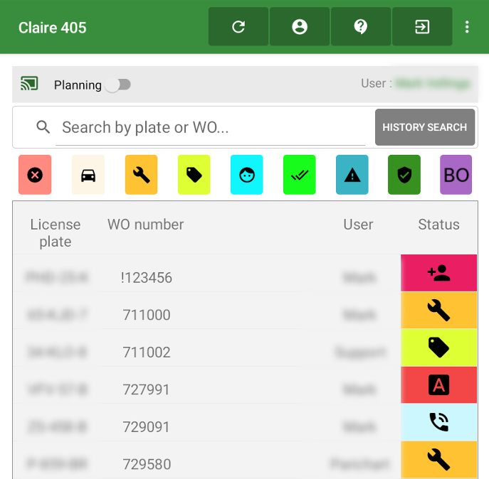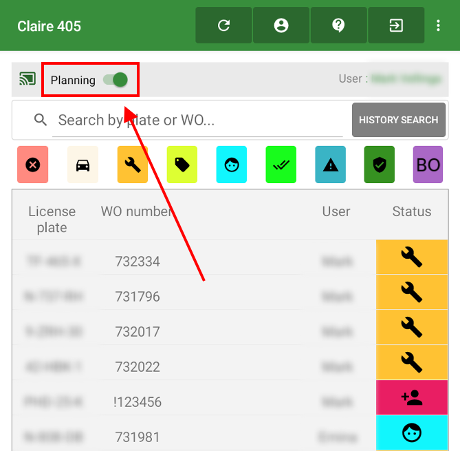 When you click on the planning toggle in the top left, you get an overview of the workorders assigned to your name (Only if the Dayplanner is active or an altenative planningtool is used).