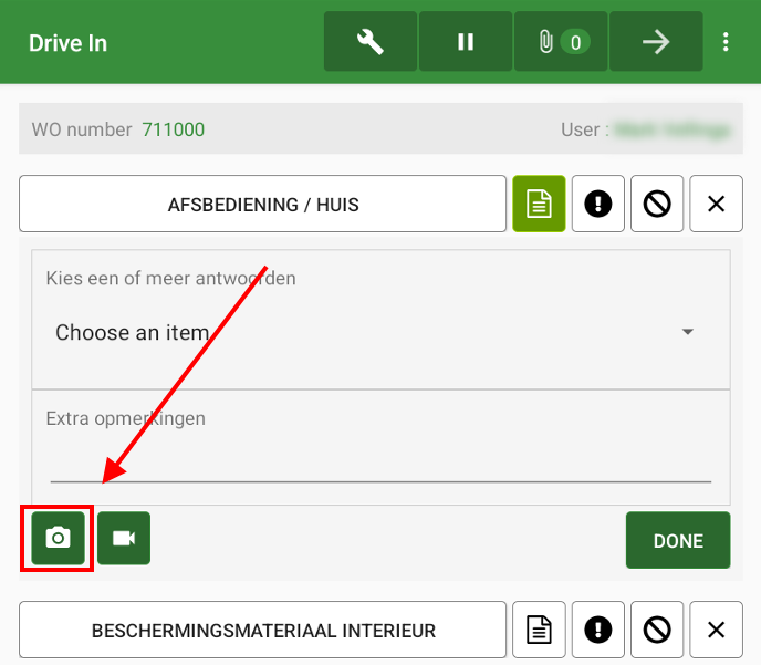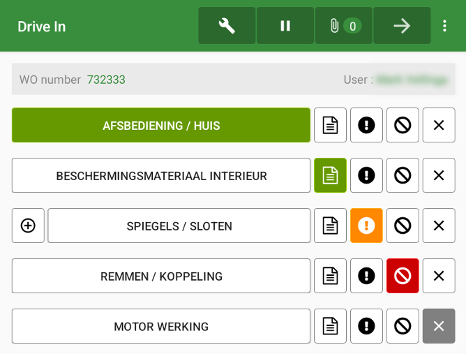 Before starting a check you first have to open the workorder. You can do this by clicking on the work order number in the overviewpage.