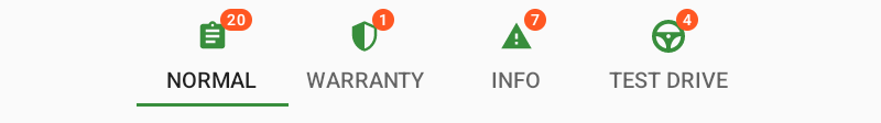In the following statusses these categories are available: Normal, Warranty, Info and Test Drive.