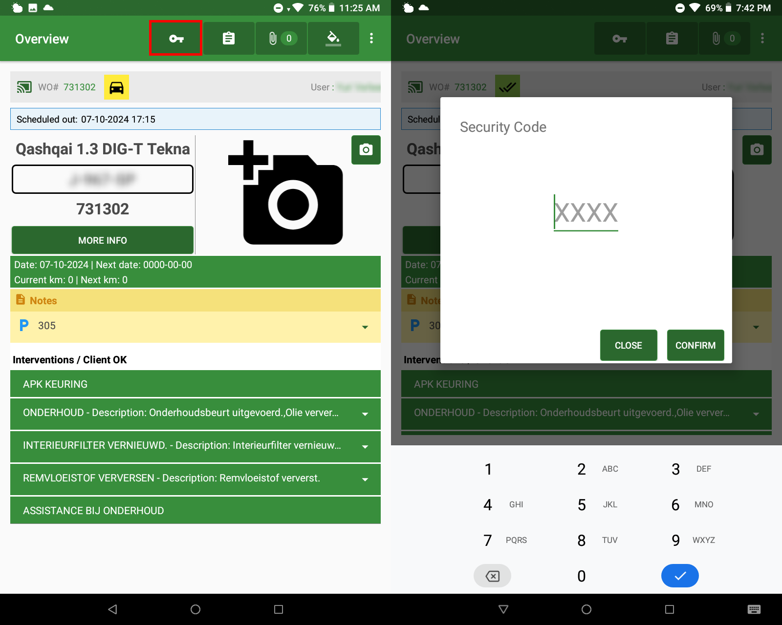 A key icon on the tablet shows the mechanic when a key has been left in the keylocker.