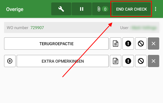 When you get to the end of the checklist, you will see the 'End car check' button.