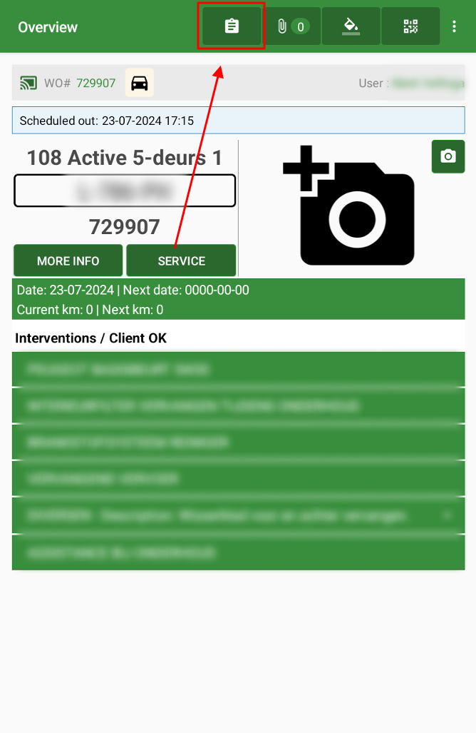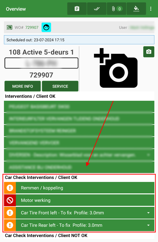When the WO opens you will come to the WO detail page with more information about the car and the Interventions the car is used for.