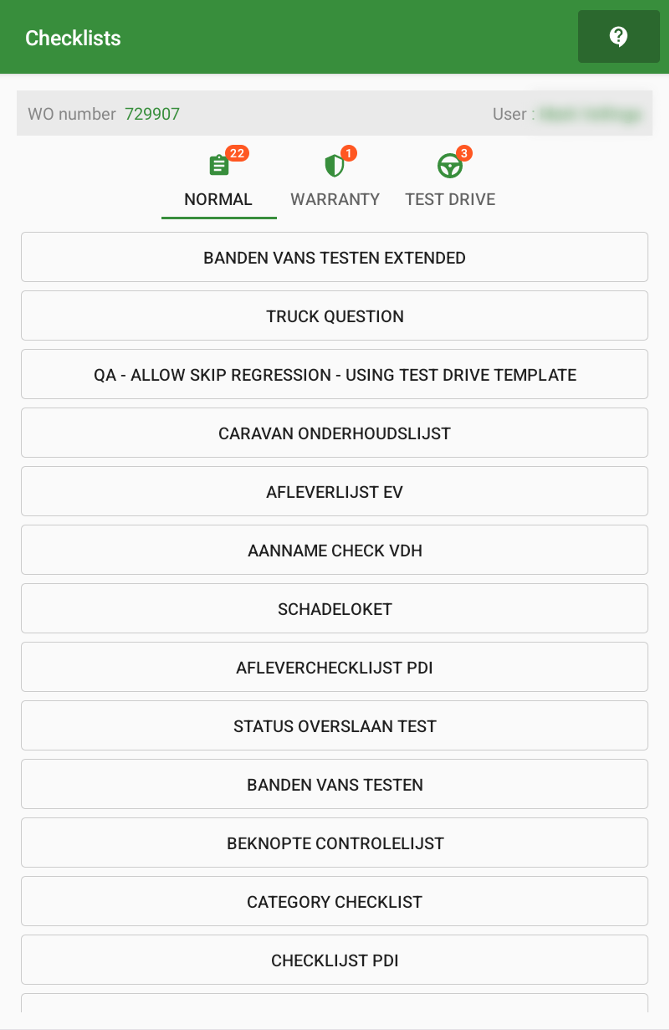 At the top right you will find several icons. The most important is the checklist icon, where you will find all the checklists.