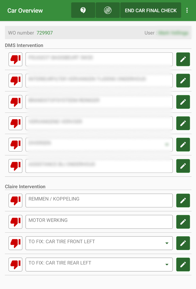 In order to record your changes, simply click on the 'End car final check' button on top right corner of the Car Overview screen.