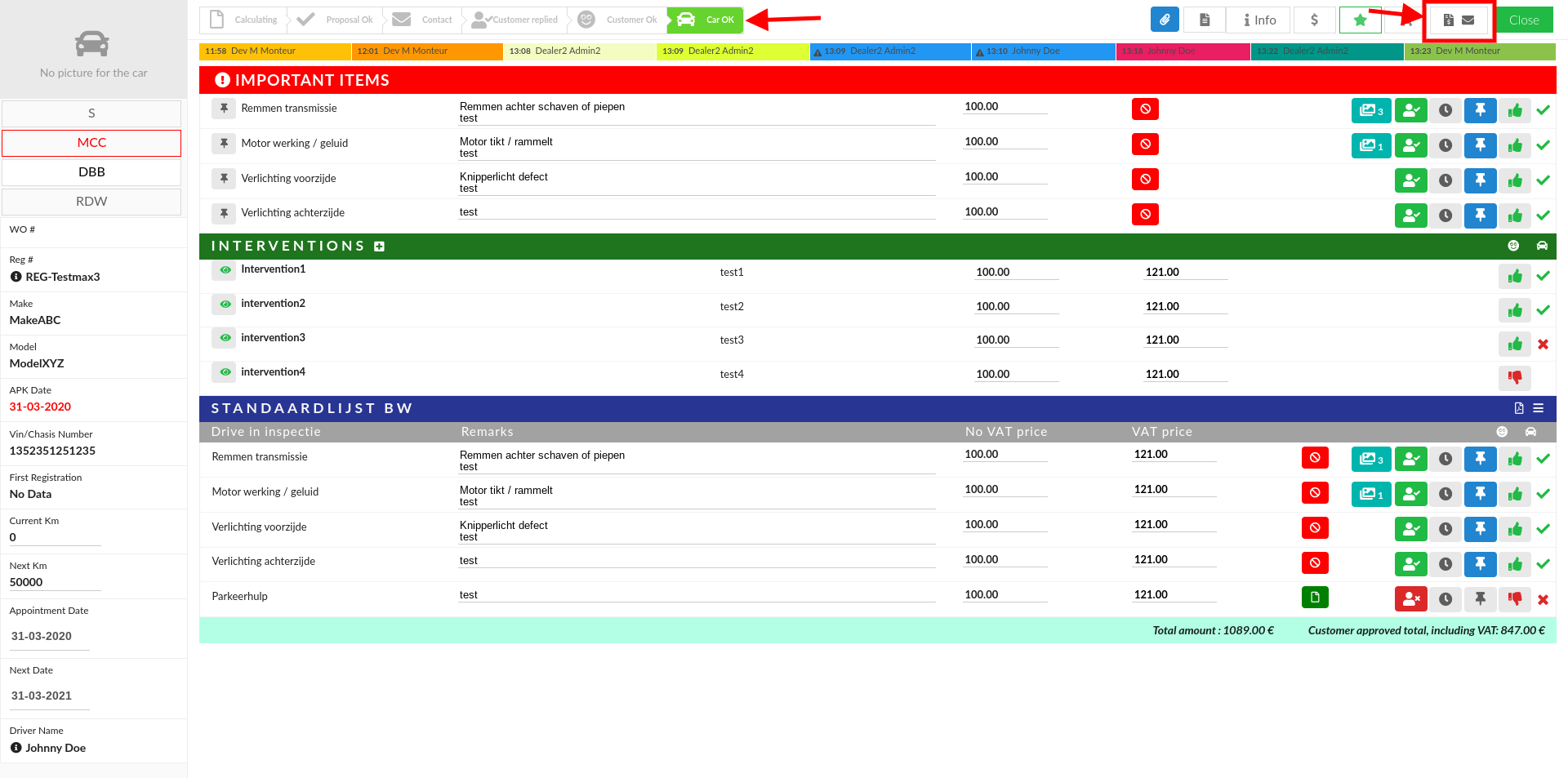 As part of the Customer Communication module, this new feature allows you to inform your client on the final outcome of the appointment that has been completed on his vehicle.