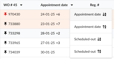 Sort appointments by scheduled in/out date (V8)