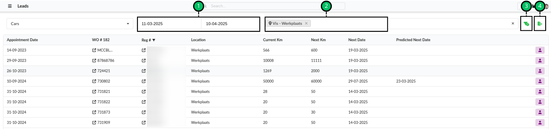 4. | Export button | Click this to create an export of the cars overview with the filters set. |