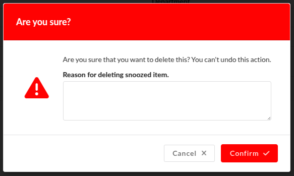 Step 1: Open a snoozed item by clicking on the blue snooze icon. Then click Delete at the bottom right.
