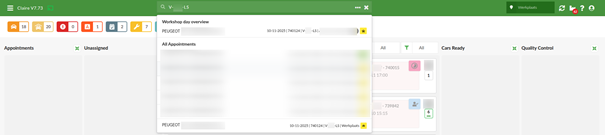 possible to search on workorder number, license plate and customer name. Click
