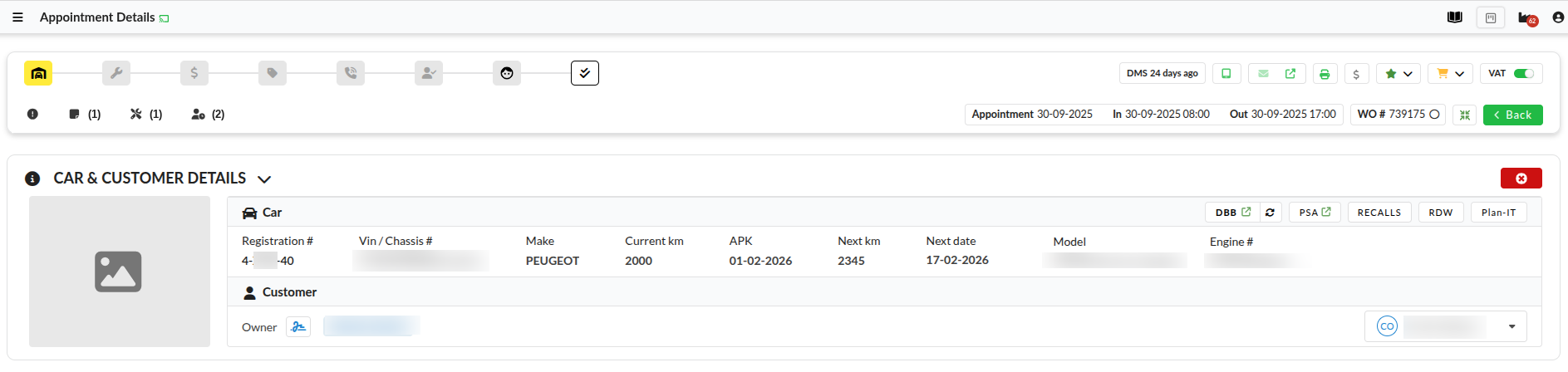 * planned time for the intervention (time is imported from DMS CarIt, Autoline ODBC, Autoline Keyloop, Wincar and Incadea)