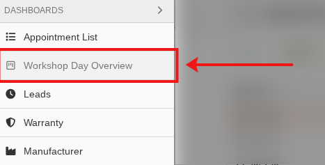 Once the day overview is enabled at your location, you can access it by selecting Workshop Day Overview from the left-hand menu.