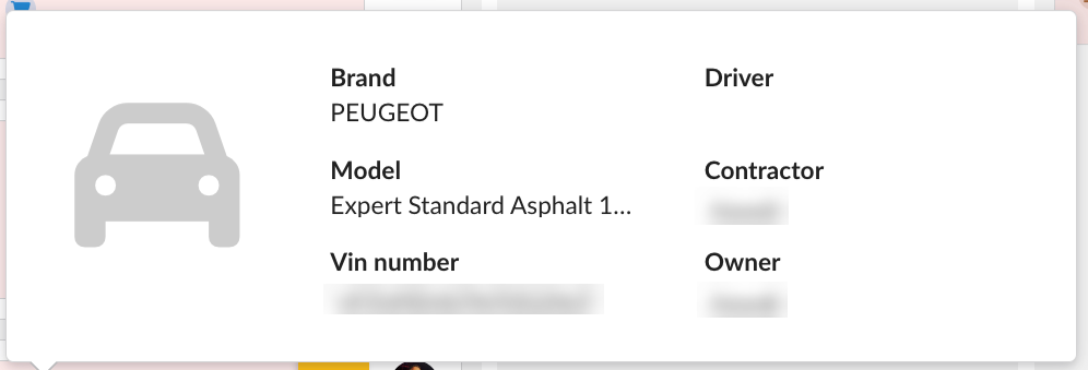 Once you move your cursor over the registration number, a window will appear containing additional information about the car (make, model, etc.).
