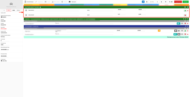 Interventions initiales provenant du DMS ou entrée manuellement: