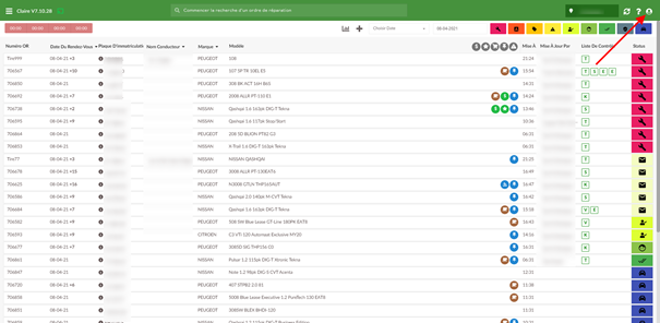 rendez-vous défini comme Voiture en atelier dans la même journée.