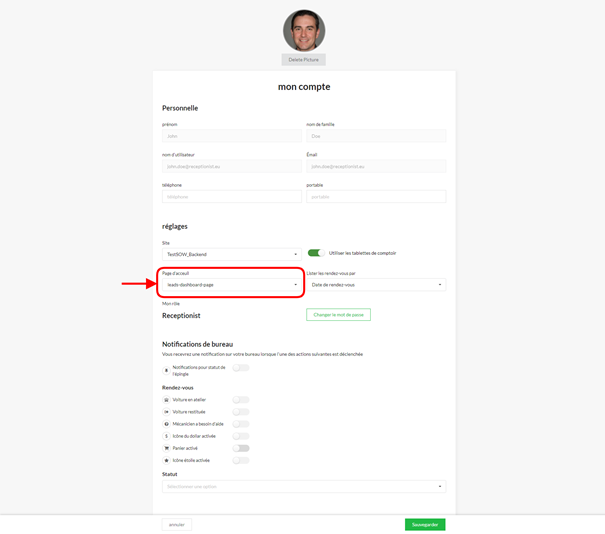 Changer de page d'acceuil