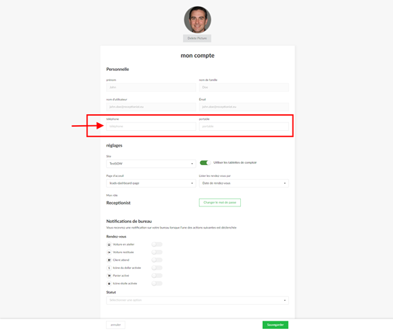 Mise à jour du numéro de téléphone
