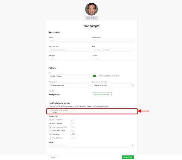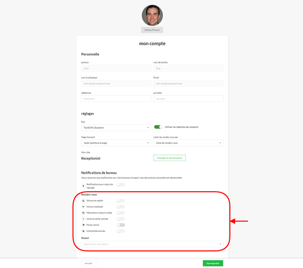 sélectionnez un ou plusieurs statuts, vous recevrez alors une notification