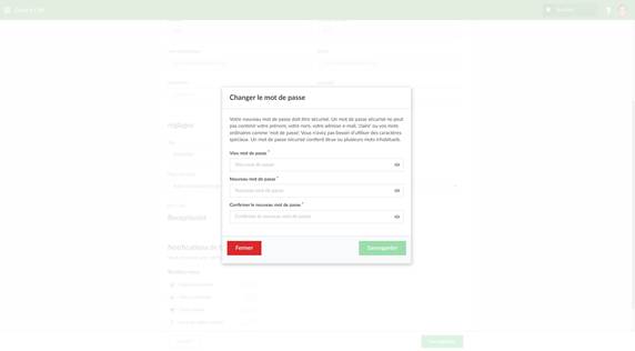 fenêtre modale apparaît, dans laquelle vous pouvez modifier votre mot de passe.
