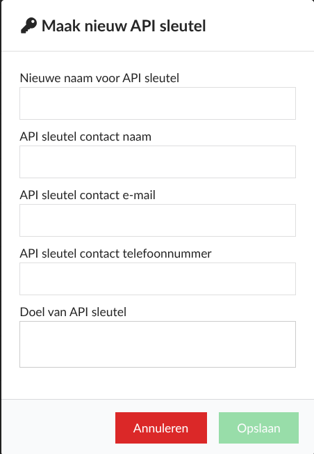 Maak een nieuwe API sleutel aan: